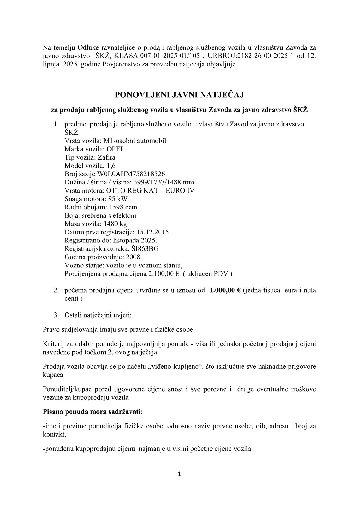 Ponovljeni javni natjecaj Chevrolet Laceti